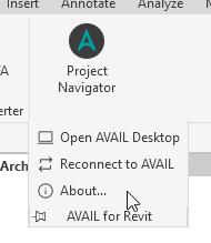 2. In Revit, select the Add-ins tab > AVAIL for Revit dropdown > About.